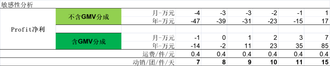目前包含美团优选、多多买菜、橙心优选在内的社区团购平台,网格仓运营者的单件商品运费为0.4元至0.6元不等,以上述敏感性分析为例,当运费固定时,动销团长处的每日下单件数成为极其敏感的因素,目前各个平台对于网格仓的面积要求最低700平米以上,美团则要求1000平米左右,而经过试算,网格仓对于房租等支出并不敏感。